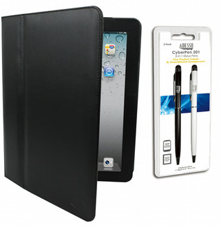 The Adesso® iPad™ Case and 2-in-1 Stylus Pens combo are the perfect companions for your iPad™ —regardless of your iPad™ model. This case is designed to fit both the first generation iPad™ or the new iPad 2™, offering both iPad 2™ cameras full visibility. Enjoy the convenience of an advanced auto-securing magnetic flap that provides extra security and is easy-to-use. Our case also offers multiple viewing angles for either managing your emails, viewing photos and slide shows or watching movies. The included 2-in-1 Stylus Pens come in two colors and provide a stylus rubber tip to navigate, draw, take notes and interact with iPad™ more accurately and fingerprint-free. This stylus also conveniently offers an ink pen to quickly jot down notes on paper, simply twist pen barrel and instantly you have access to a pen. With this case and stylus pen combo you will always be prepared —no matter where you are.