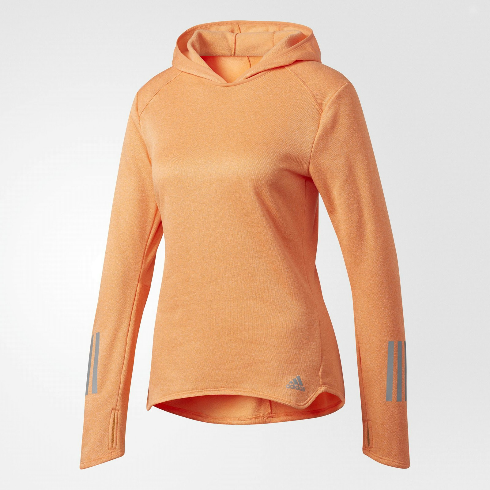 You get out there before the day has a chance to warm up, and this women's running hoodie provides the full coverage and breathability you need to run through the sunrise. Built in soft fleece, climalite® fabric draws moisture away from your skin as you build up a sweat. A hood offers maximum protection from the wind, while thumb holes add extra coverage. A handy side seam pocket holds small items and a contrast binding on the hood finishes the look.