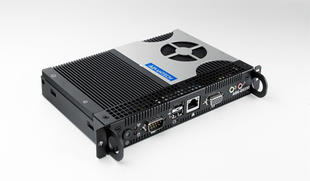 The very compact (200 x 119 x 30 mm) ARK-DS220 digital signage player is an Intel® OPS (Open Pluggable Specification) digital signage platform that helps standardize the design and development of media player and display. Development, installation, management, maintenance and upgrade are all easy. The ARK-DS220 is powered by Intel® Atom D525 dual-core (fan-based) or Intel® Atom™ N455 single-core processor (fanless) with built-in graphic. ARK-DS220 also supports 1x GigaLAN, 1x COM port, and 2x USB2.0, giving a great selection of data communications for display applications. The entire design makes digital signage applications more intelligent and connected.