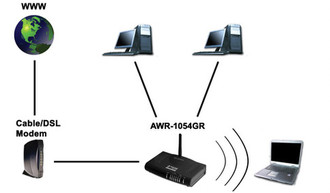 AWR-1054GR wireless broadband router provides maximum transfer rate up to 85 Mbps from WAN to LAN, 100 Mbps from LAN to LAN and up to 54 Mbps through wireless channel. AWR-1054GR provides password protected configuration function that guarantees the best security on CO settings. There is no need for user intervention. AWR-1054GR also features DHCP function which allows the server to assign IP addresses to all workstations on the LAN.