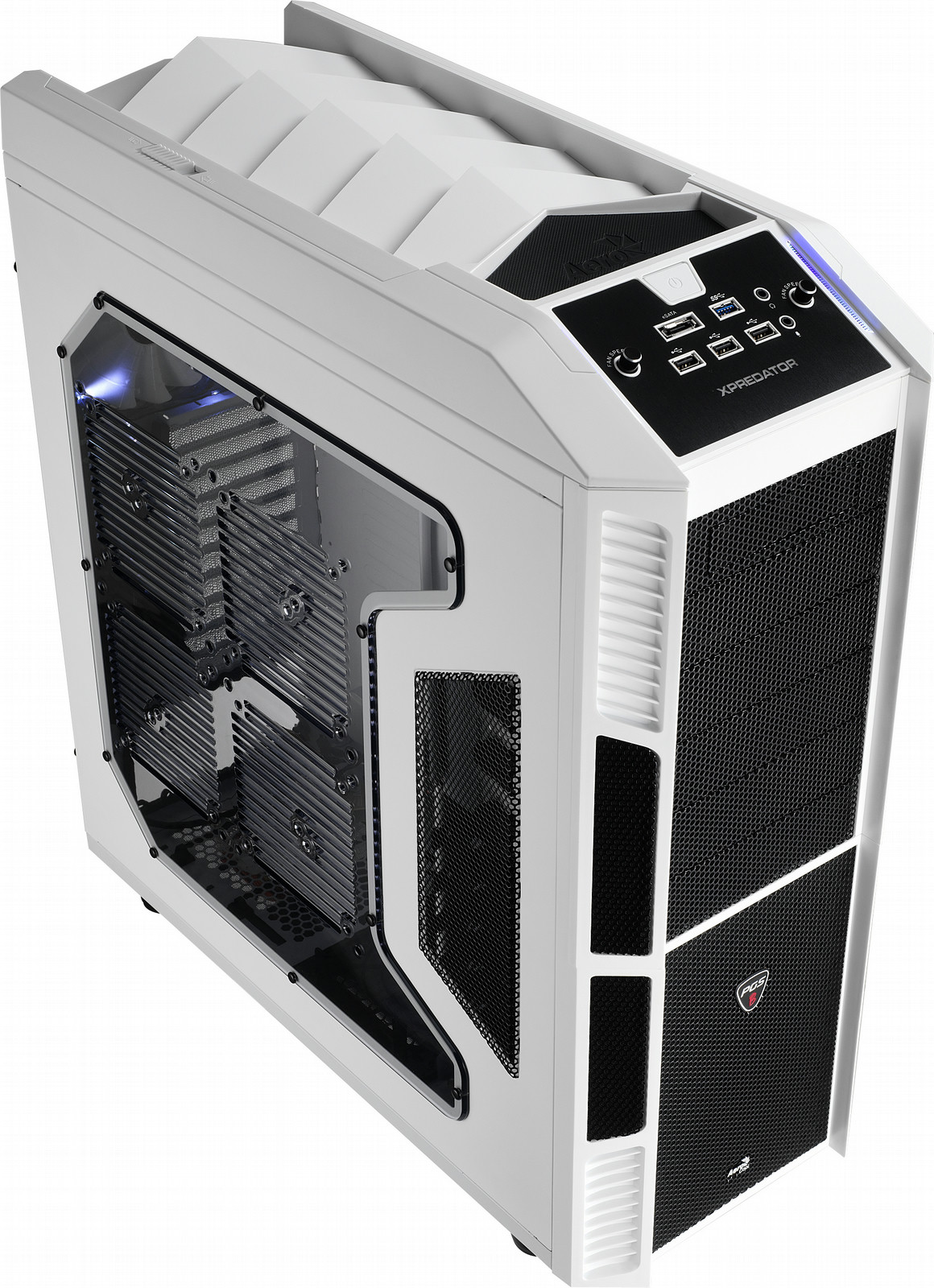 - Superb Airflow and Performance - The XPredator case comes with 1 x 23cm Quad White LED front in-take fan, 1 x 23cm top exhaust fan, 1 x 12/14cm back exhaust fan (optional), 1 x 12/14cm bottom in-take fan (optional) and 4 x 12cm/14cm or 1 x 18/20cm in-take side panel fans (optional). In addition, 2 sets of fan controllers are provided to control these fans.