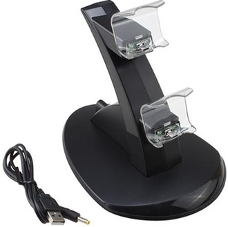 USB Dual Charger Charging Docking Station Stand, Playstation 4, black
