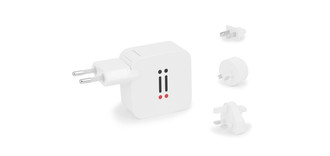 Aiino's Travel Charger is a wall charger that features a double USB plug. It allows you to recharge simultaneously two different portable devices such an iPod and an iPhone. The kit includes plug adaptors for the following countries: North America, Japan, China, UK, Europe, Korea, Australia and Hong Kong.