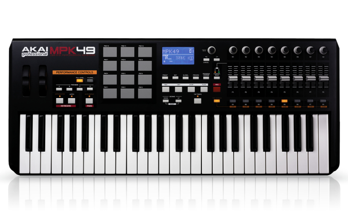 Maximize musical ideas on-stage or in the studio with the Akai Professional the MPK49 performance controller. The MPK49 ushers in a new era for USB/MIDI controllers by combining a high-quality 49-key semi-weighted keyboard with aftertouch and 12 genuine MPC drum pads. 48 total pads are accessible via 4 pad banks. The pads feature the heart and soul of hip hop—the MPC Note Repeat and MPC Swing. The MPK49 even has a built-in arpeggiator for creating quick, creative riffs in seconds.
