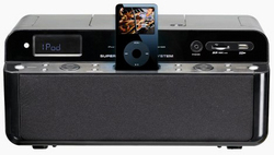 Akai Soundbox + iPod docking. RMS rated power: 25 W, Audio formats supported: MP3,WMA. Supported radio bands: AM,FM. Display: LCD. Colour of product: Black. Compatible memory cards: MMC,SD