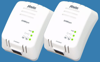 Alecto Homeplug 85 mbps, TwinSet. Connectivity technology: Wired, Host interface: Ethernet. Data transfer rate (max): 85 Mbit/s. Maximum operating distance: 200 m. Colour of product: White. Compatible operating systems: MAC-Linux-Unix-Vista-XP-2000-ME-98