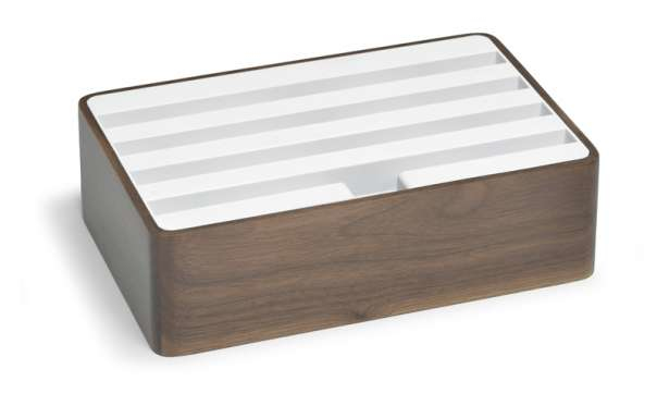 ALLDOCK Walnut from New Zealand. Size: medium. Smartphone, tablet or camera - all together in stylish ALLDOCK charging station. With its high-speed USB hub and its comprehensive features, it is suitable for virtually any digital device. Thanks to its simple design, traditional craftsmanship and variety of materials, it fits perfectly on your favorite places in your home or office.