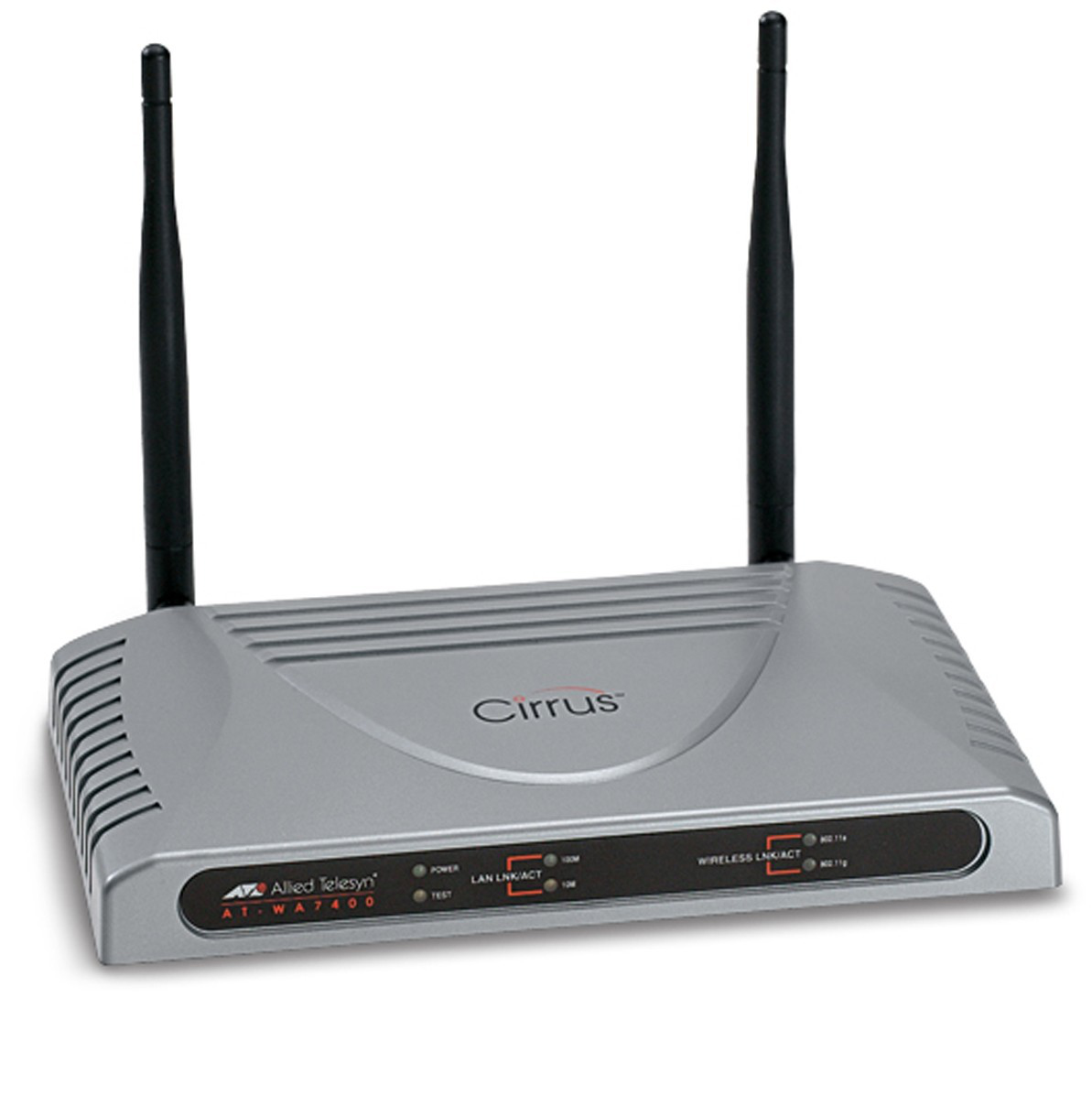 The AT-WA7400 dual-radio enterprise-class wireless access point includes radios that operate within both 2.4GHz and 5GHz frequency bands. It is fully compliant with IEEE 802.11a, b, and g standards and offers superior performance with the latest security features and a suite of advanced management tools.