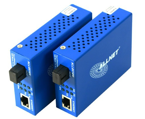 WDM Mediaconverter Bundle (master + slave) for the implementation of 10/100Mbps copper lines to light wave (SC connector) with only one glass-fiber (single mode, 9 micron) with a range of up to 20 km