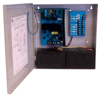 Model AL400ULPD8 power supply/charger converts a 115VAC 60Hz input, to a 4 amp of continuous supply current @ 12VDC or 3 amp of continuous supply current @ 24VDC distributed via eight (8) fuse protected Class 2 Rated power limited outputs. Model AL400ULPD8CB is a PTC protected version of this unit.