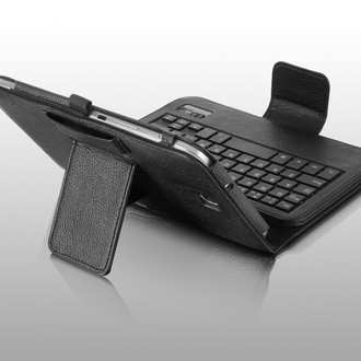 The case includes a removable wireless Bluetooth keyboard so you can transform your Note into your own personal laptop. The Folio Case transforms into a handy and very stable stand with multi-angle viewing, so you can read and view your Note comfortably. The keyboard is completely detachable from the case while being firmly held to the case with built-in magnets. This allows you to work and adjust the keyboard spacing based on your own comfort level.