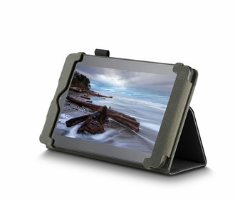 - Built-in stand positions your device in landscape orientation for hands-free viewing