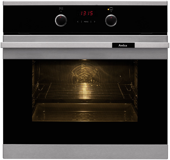 Amica TEF 1535 AA. Oven type: Electric oven, Total oven(s) interior capacity: 66 L, Total oven power: 3300 W. Colour of product: Black, Stainless steel, Control type: Touch, Control position: Front. Maximum temperature (convection): 2000 °C. Energy efficiency class: A. Width: 595 mm, Depth: 575 mm, Height: 595 mm