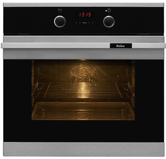 Amica TEF1533. Oven type: Electric oven, Total oven(s) interior capacity: 60 L, 1st oven interior capacity: 60 L. Colour of product: Stainless steel, Control type: Rotary, Control position: Top front. Energy efficiency class: A, Power consumption (typical): 3300 W, Bulb power: 25 W. Width: 595 mm, Depth: 575 mm, Height: 595 mm