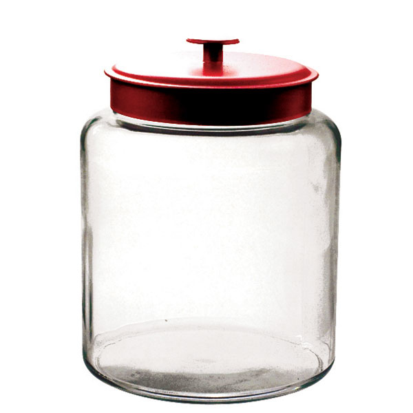 - Anchor Hocking clear glass storage - 2.5 gallon Montana Jar - Red Metal Lid - Open Stock - 1 each