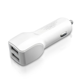 Car Charger, 2xUSB, 5V/4.8A, 31g, 0.9m USB-Lightning, White
