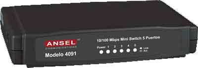 Ansel 4091. Switch type: Unmanaged network switch. Copper ethernet cabling technology: 100BASE-TX,10BASE-T. Networking standards: IEEE 802.3u,IEEE 802.3x. MAC address table: 2000 entries, Supported data transfer rates: 10/100 Mbps, Maximum data transfer rate: 100 Gbit/s. Packet buffer memory: 1 MB
