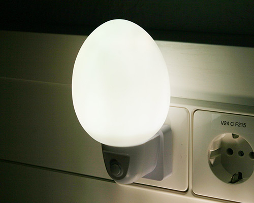 - In three different colors. - Thanks to LED technology long lifetime and no warming. - Very low power consumption (0.4W). - Activation of the night light by On/Off-switch.