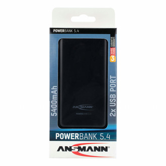 Ansmann Powerbank 5.4. Colour of product: Black, Charger compatibility: Universal, Compatibility: Apple iPhone 5/5S/5C/SE/6/6S/6S Plus/7/7 Plus, iPad Pro/Air 2/mini 4/mini 2, Samsung Galaxy S/A/J, H. USB input port type: Micro-USB. Battery technology: Lithium Polymer (LiPo), Charging source: USB, Power protection features: Battery discharge, Overcharge, Overload, Short circuit. Cables included: Micro-USB