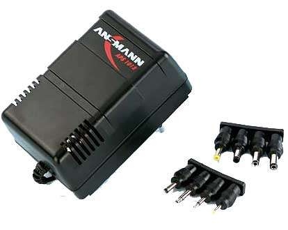 Stationary power supply for mobile equipment adjustable from 1.5-12 V Output voltage adjustable at 3V, 4.5V, 6V, 7.5V, 9V and 12V; Max. output current 1000 mA; Includes exchangeable multi-tip connectors; Correct polarity adjustable with alternate connector.