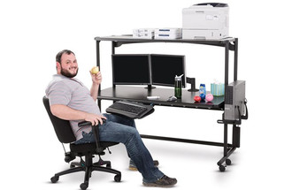 - Single worksurface with a 1.5" deep front metal lip for strength and wrist support