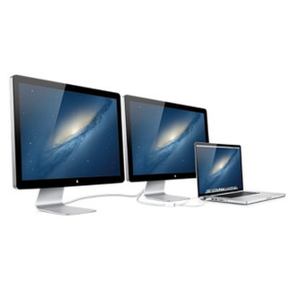 With just one cable, connect any Thunderbolt-enabled Mac and get 27 inches of high-resolution screen space, high-quality audio, a FaceTime HD camera, FireWire 800 and Gigabit Ethernet ports — and a Thunderbolt port you can use to daisy-chain additional high-performance peripherals such as hard drives and video capture devices.