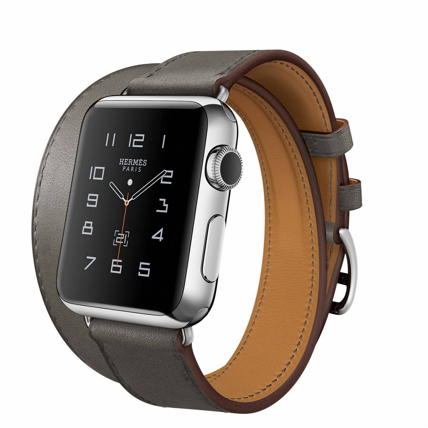 38mm, Retina display, Force Touch, S1, Wi-Fi, Bluetooth, watchOS 2, Double Tour, Stainless Steel Case, Étain Leather Strap, L Uncompromising craftsmanship. Pioneering innovation. Groundbreaking functionality. Apple Watch Hermès is the culmination of a partnership based on parallel thinking, singular vision and mutual regard. It is a unique timepiece designed with both utility and beauty in mind. With leather straps handmade by Hermès artisans in France and an Hermès watch face reinterpreted by Apple designers in California, Apple Watch Hermès is a product of elegant, artful simplicity — the ultimate tool for modern life.