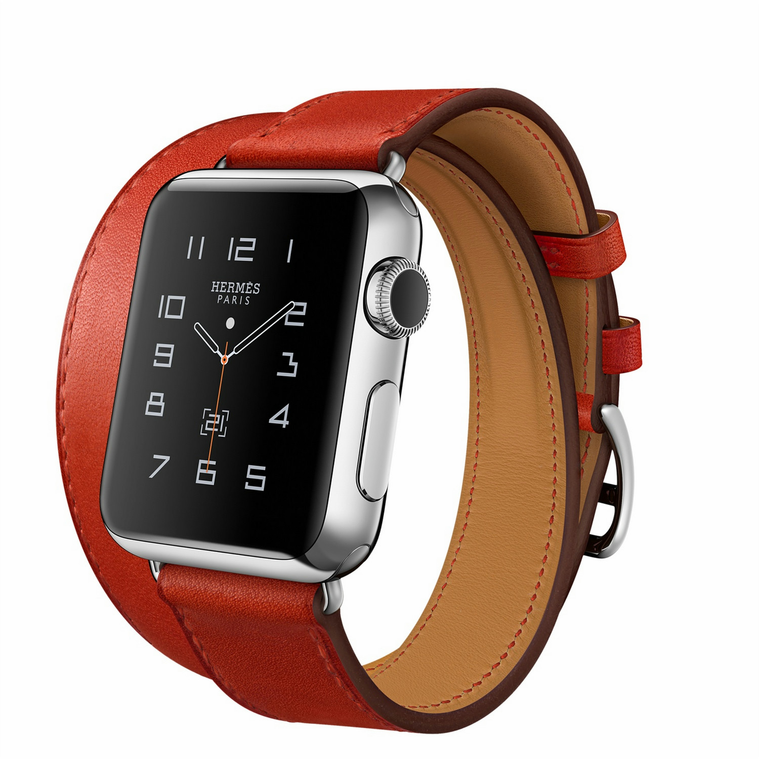 38mm, Retina display, Force Touch, S1, Wi-Fi, Bluetooth, watchOS 2, Double Tour, Stainless Steel Case, Capucine Leather Strap, S/M Uncompromising craftsmanship. Pioneering innovation. Groundbreaking functionality. Apple Watch Hermès is the culmination of a partnership based on parallel thinking, singular vision and mutual regard. It is a unique timepiece designed with both utility and beauty in mind. With leather straps handmade by Hermès artisans in France and an Hermès watch face reinterpreted by Apple designers in California, Apple Watch Hermès is a product of elegant, artful simplicity — the ultimate tool for modern life.