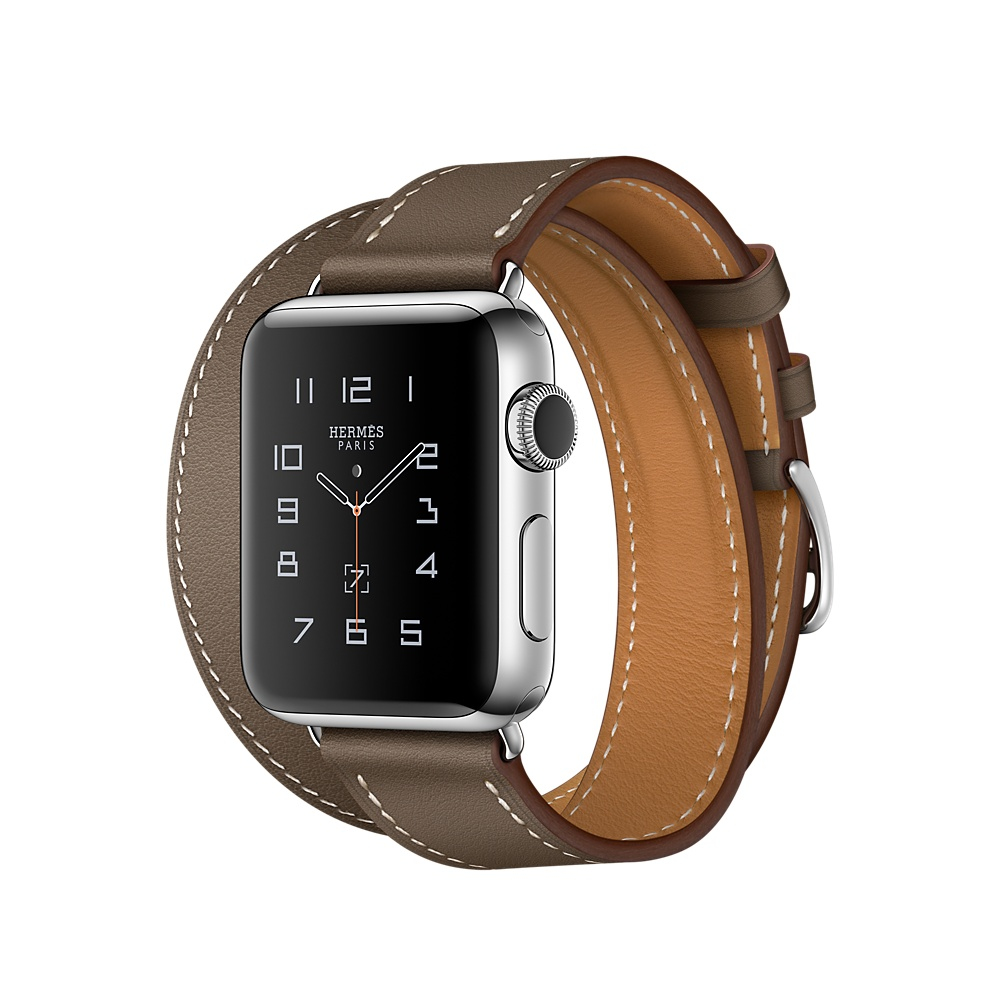 Watch Hermès, 38mm, OLED Retina display, Force Touch, S2, 802.11b/g/n, Bluetooth, watchOS 3, Stainless Steel Case, Étoupe Swift Leather Double Tour