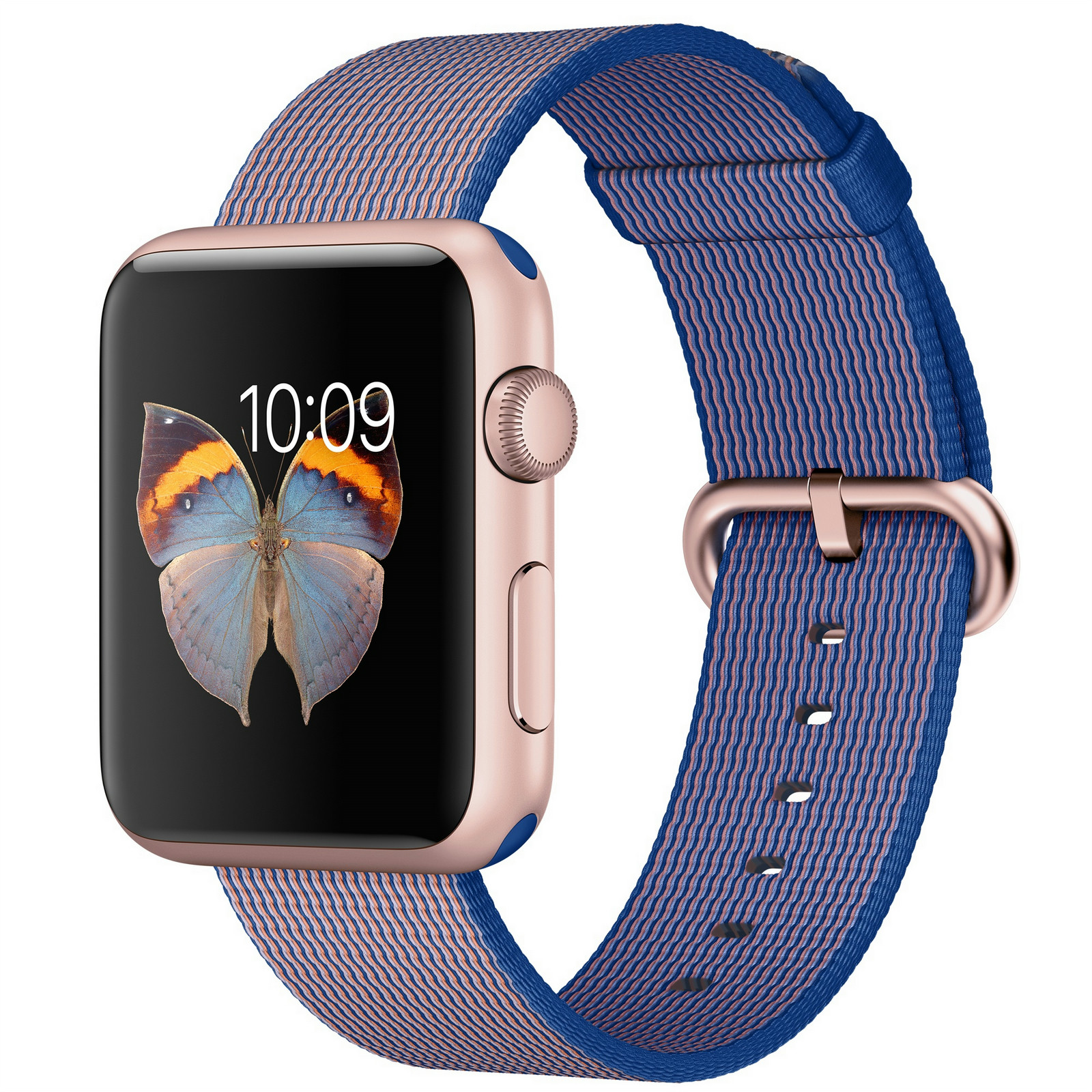 42mm, Retina display, Force Touch, S1, Wi-Fi, Bluetooth, watchOS 2, Rose Gold Aluminium Case, Royal Blue Woven Nylon Band You. At a glance.