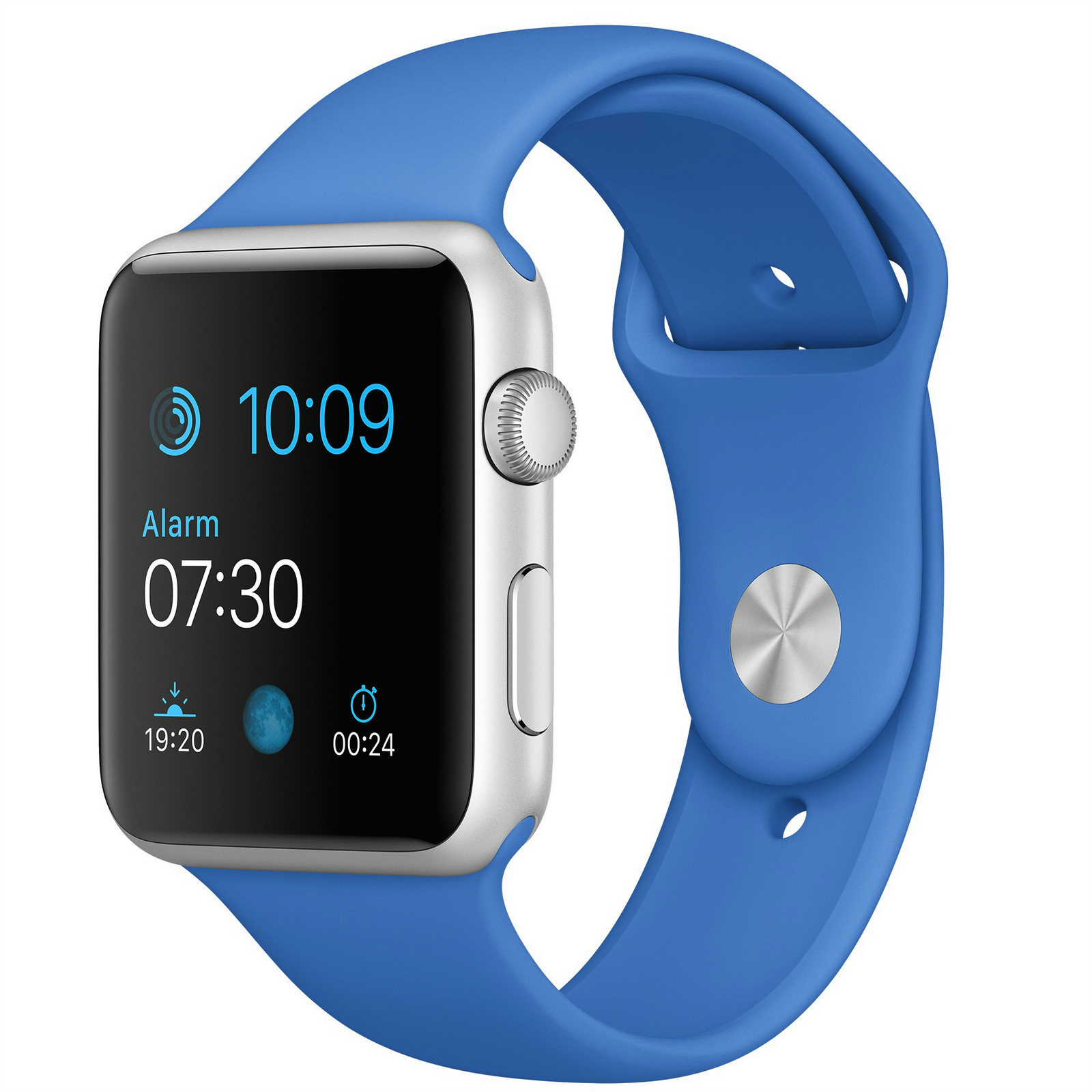 42mm, Retina display, Force Touch, S1, Wi-Fi, Bluetooth, watchOS 2, Silver Aluminium Case, Royal Blue Sport Band You. At a glance.