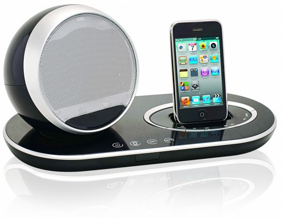 High power speaker system with attractive design, compatible with iPhone, iPod and other devices thanks to its auxiliary mini jack input. Easy to handle and transport, includes remote control, Auto pause for incoming calls and incorporates charging function for iPhone and iPod.