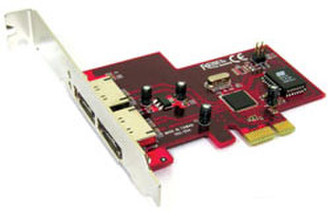 SATA II hard drives are gaining popularity because eSATA II offers data transfer speeds up to 300 MB/sec. This PCI Express Dual External Ports can upgrade your PC or Mac computer to have two SATA II Channels. The board provides a 1X 2.5Gbps PCI Express interface on the host side and dual, fully compliant SATA II 3Gbps ports on the device side to access Serial ATA mobile external and internal storage devices such as hard disk drive, CD-ROM, CD-RW, DVD-ROM. This a fast and easy way to connect two external SATA II 3Gb/s hard drives to your PCI Express equipped PC or Mac computer!