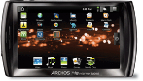 The Archos 48 internet tablet has 4.8' screen with a 800x480 native resolution. It's fast, thanks to the ARM Cortex Superscalar processor inside and its ability to connect to 802.11n networks, or tether via Bluetooth® to a 3G phone.