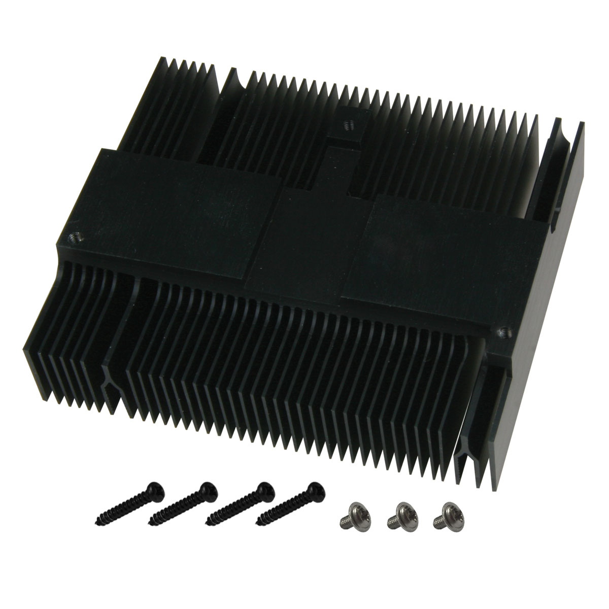 The large heatsink cools the PCB in the RAM area and thus also the RAMs itself which are soldered onto the PCB.
