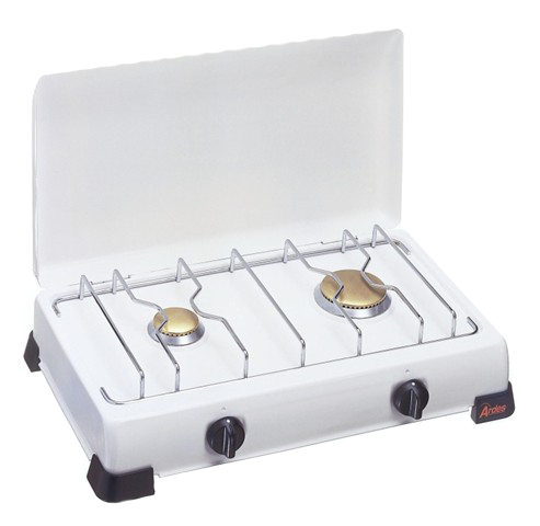 ZEUS table gas cooker Table gas cooker with cover. Stainless steel grid, 2 burners LPG version.