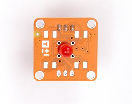 Module description: This module features a 5mm Blue Light Emitting Diode, the standard TinkerKit 3pin connector and a green LED that signals that the module is correctly powered and a tiny yellow LED that shows the current brightness of the red LED. A resistor provides the optimal amount of current when connected to an Arduino.