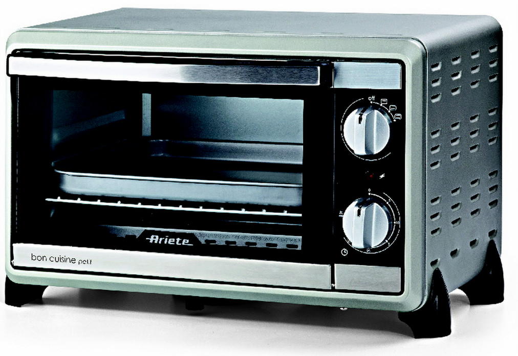 Ariete Bon Cuisine Petit. Oven type: Electric oven, Total oven(s) interior capacity: 10 L, Total oven power: 1000 W. Colour of product: Silver, Control type: Rotary, Control position: Front. Timer type: Mechanical. Width: 425 mm, Depth: 291 mm, Height: 286 mm