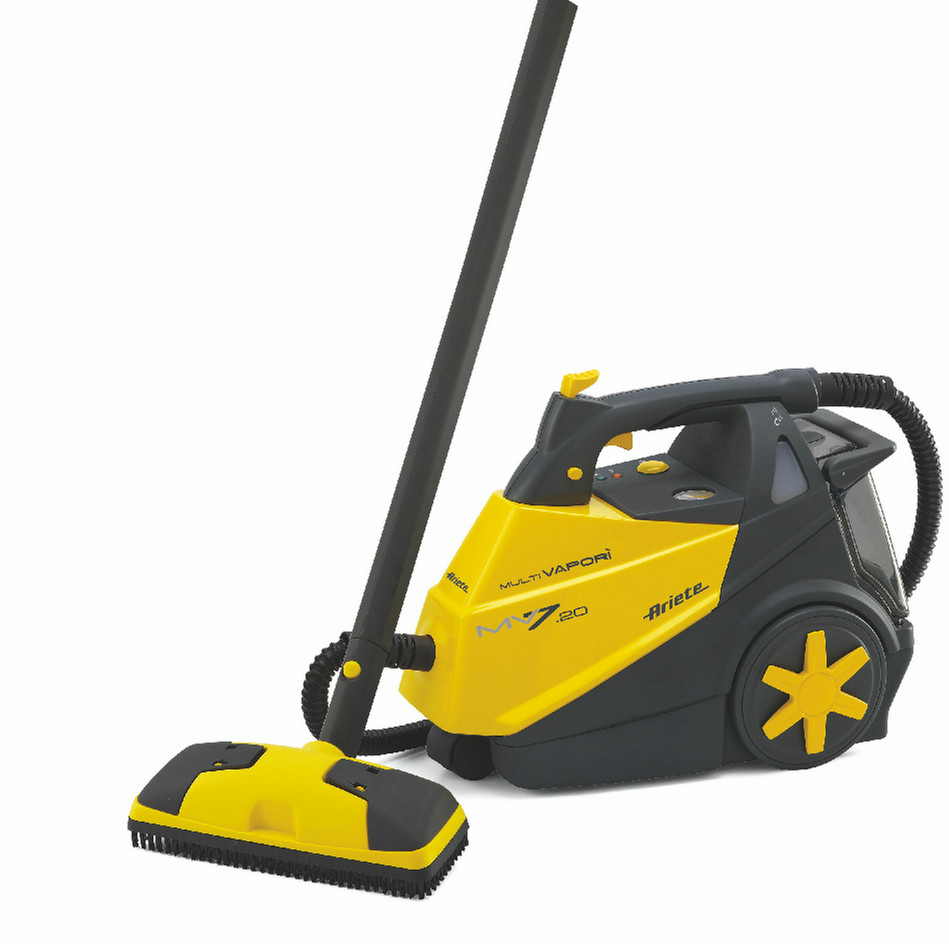 Multipurpose steam cleaner with refillable boiler for ceaseless, eco-friendly and deep-down cleaning of all home surfaces: the tank is removable and easy to fill, even using tap water. The steam jet is powerful and constant, thanks to 1400 Watts of power and 4 bars of pressure. To deal with stubborn stains, the MV7.20 has a detergent function, an innovative device that, thanks to a special dispenser on the nozzle, injects small amounts of detergent when needed, to maximise the deep-down cleaning effect of the steam, removing stubborn stains and seemingly unbeatable dirt. The detergent is dispensed, using a trigger, from a special reservoir that is easy to refill. Complete with on and steam ready lights, plus pressure gauge.