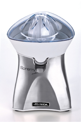 Spremì Metal, 60W The new all-metal Spremì is both refined and elegant, with a unique design and compact dimensions. It has a double reamer for small and large citrus fruits, pulp-pressing tabs, non-drip spout and a lid to protect against dust. Ideal for refreshing, tasty and freshly squeezed juice. Its alternating rotary movement and 60 Watts of power means it presses the fruit to perfection, quickly and down to the very last drop. With Spremì Metal, breakfast will become a moment of pure pleasure.