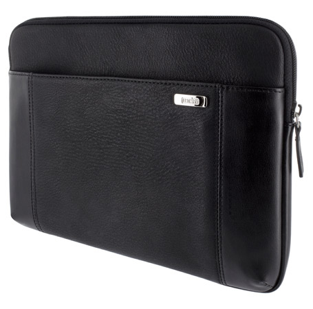 The back and front exterior of the bag is made mainly of fine-grained leather and is complemented by smooth leather on the sides. The interior of the Leather Pouch is complete with black fabric and equipped with an anti-slip lining, ensuring that the iPad does not fall out. An integrated protective ring around the inside of the zipper protects iPad from abrasion. The zipper head is finished with leather and provides good grip.