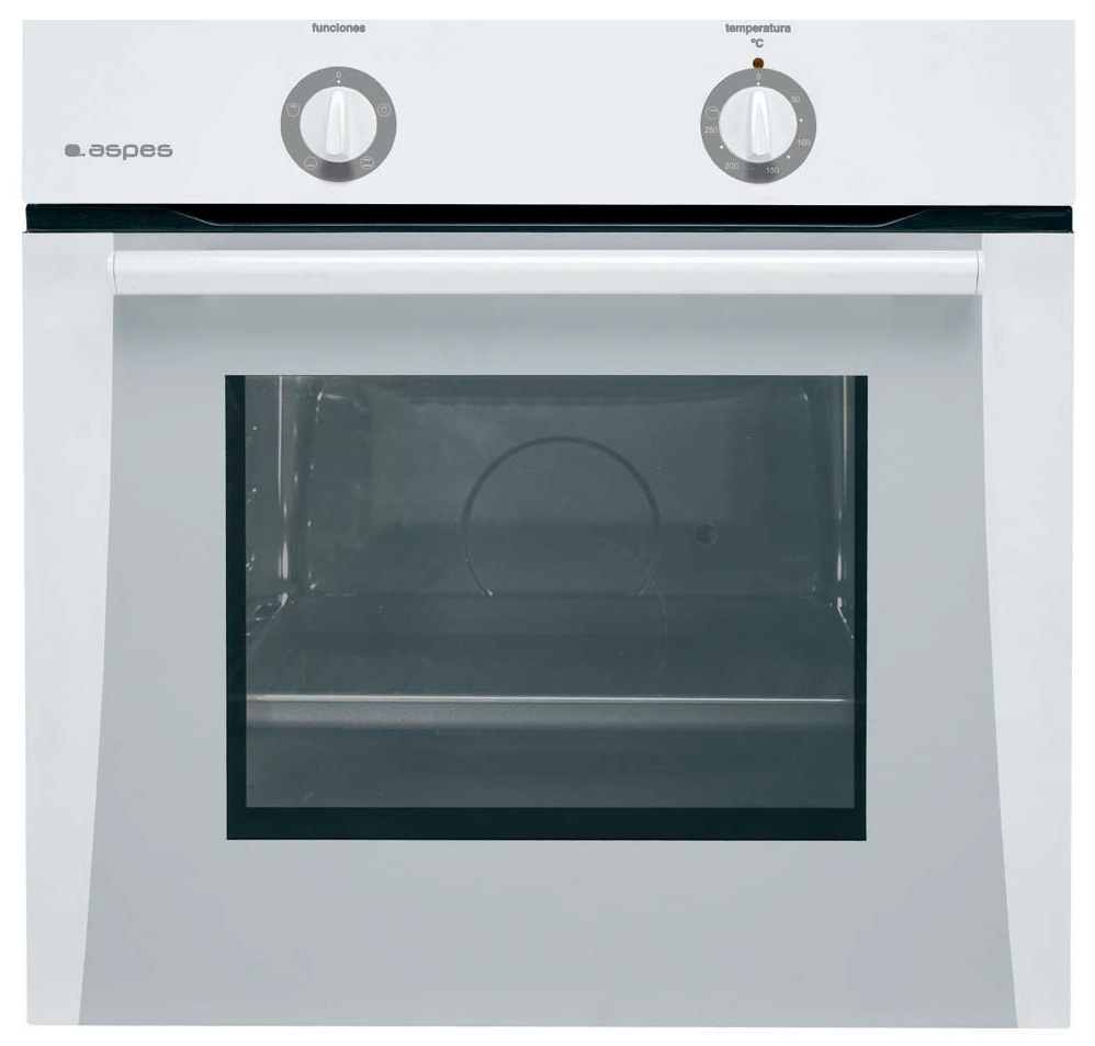 Aspes HA-1110B. Oven type: Electric oven, Total oven power: 2400 W, Grill power: 1400 W. Colour of product: White, Control type: Rotary, Control position: Front. Energy efficiency class: A, Energy consumption (conventional): 0.79 kWh, AC input voltage: 230 V. Width: 592 mm, Depth: 529 mm, Height: 595 mm