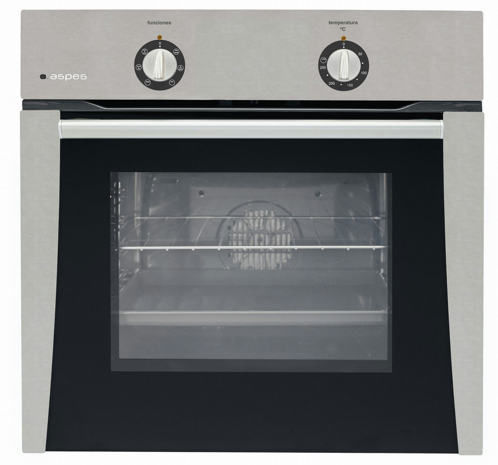 Aspes HA1114X. Oven type: Gas, Total oven(s) interior capacity: 51 L, Thermostat range (1st oven): 50/250. Colour of product: Silver. AC input voltage: 230 V, AC input frequency: 50 Hz, Power: 2.67 W. Width: 592 mm, Depth: 529 mm, Height: 595 mm