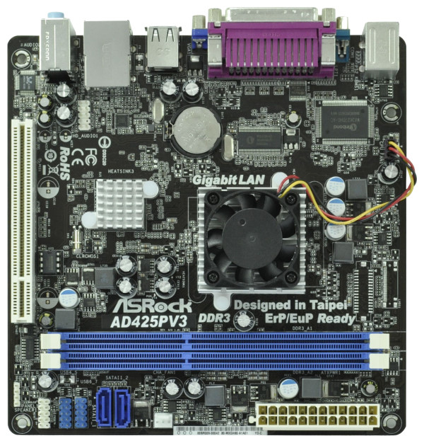 AD425PV3, Intel Atom D425 (1.8 GHz), DDR3, Intel GMA 3150, Intel NM10