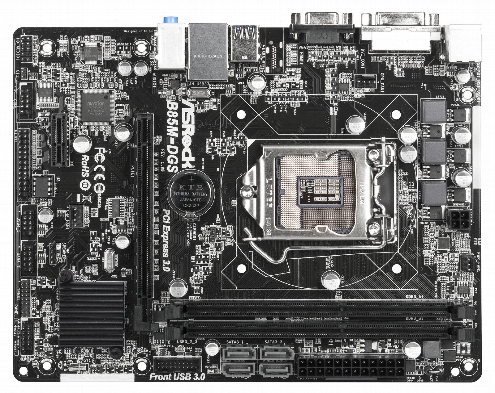 Intel B85, 2 x DDR3 DIMM, PCI Express 3.0 x16, PCI Express 2.0 x1, PS/2, D-Sub, DVI-D, 4 x USB 2.0, 2 x USB 3.0, RJ-45, Micro ATX