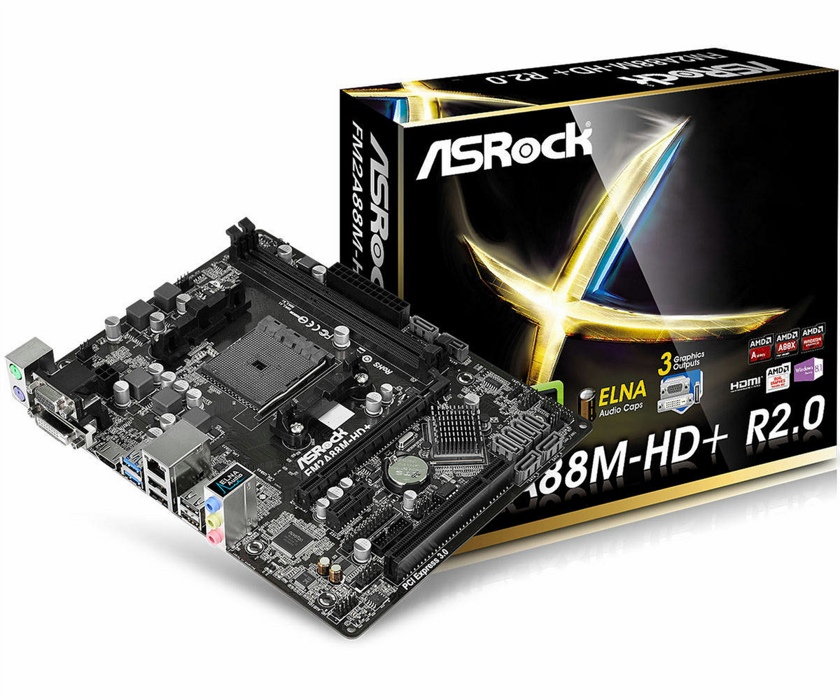 Chipset AMD A88X, Socket FM2+, 2 DIMM DDR3, 32GB, non-ECC, un-buffered memory, UEFI AMI BIOS, SATA III, Micro ATX