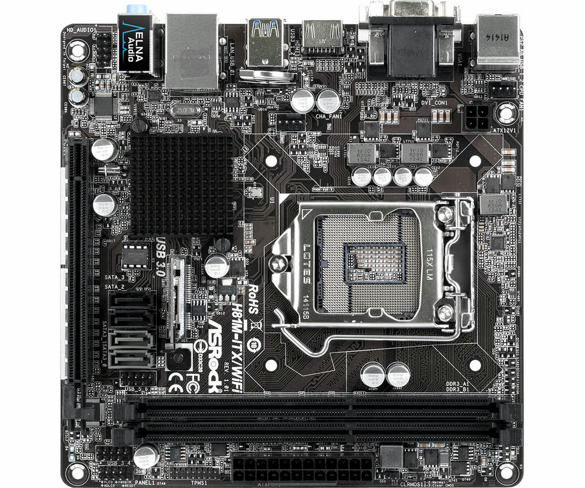 Intel H81, Socket 1150, 2x DDR3/DD3L DIMM, 32Mb AMI UEFI, ACPI 1.1, 5.1 CH HD Audio, Gigabit Ethernet, 802.11n, Mini-ITX