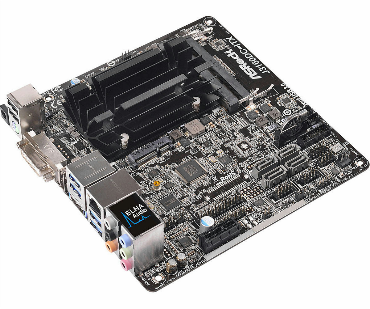 J3160DC-ITX, Intel Quad-Core Processor J3160 (up to 2.24 GHz), 2 x DDR3/DDR3L 1600/1066, Intel HD Graphics 400, 4 x SATA3 6.0 Gb/s, Mini-ITX