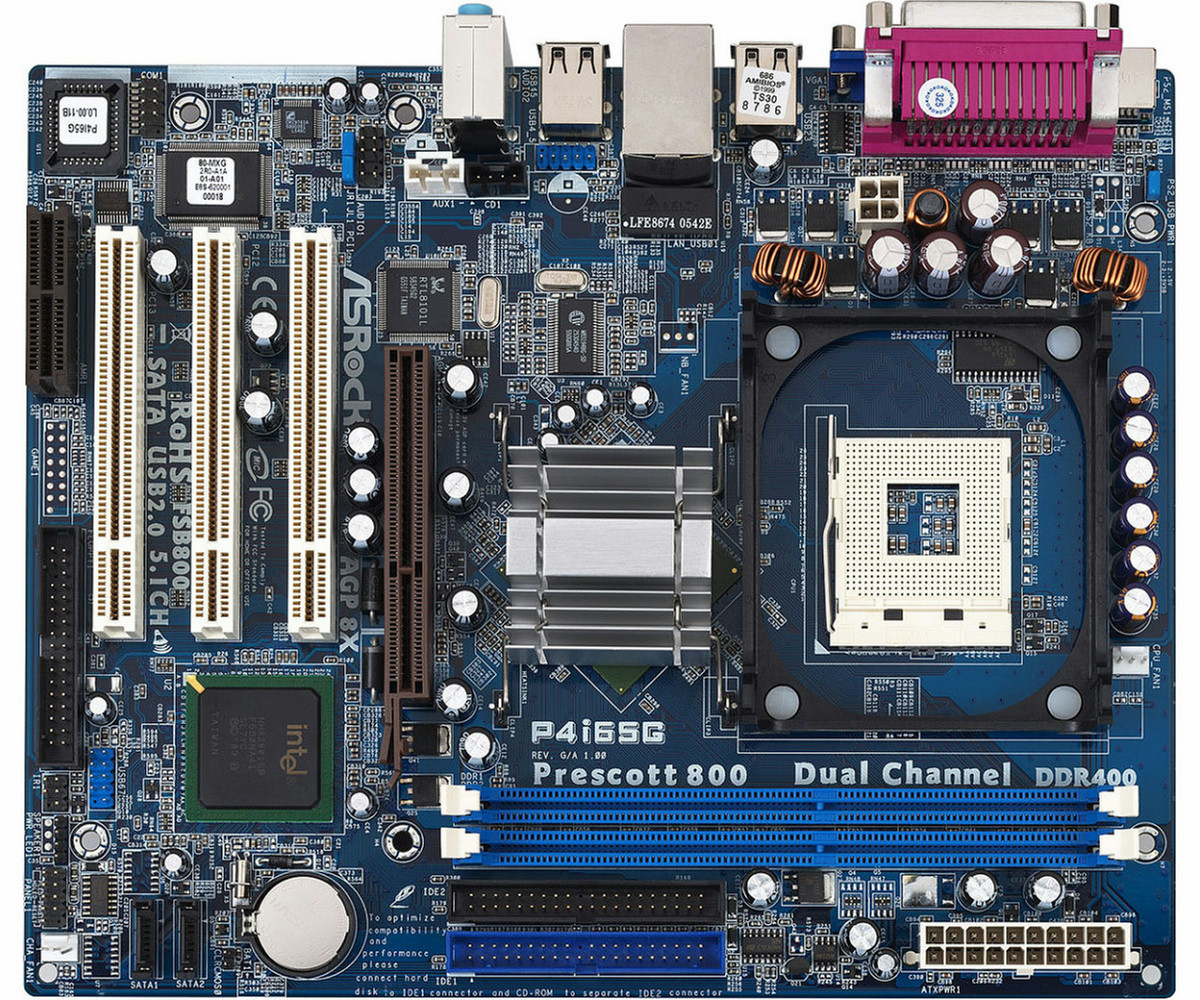 Micro ATX, Socket 478, DDR, Intel 865G, AMI BIOS