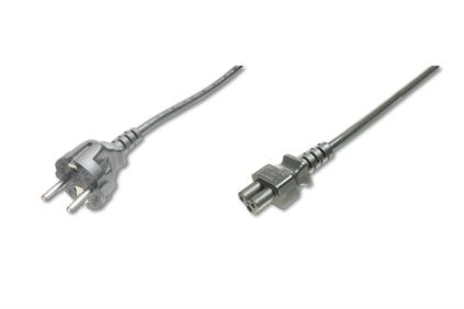 This mains connection cable, also known as „Micky Mouse“- or „cloverleaf“ connector, is used for the connection of a Laptop or power supply unit to the German indoor power supply system (outlet).